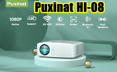 "Reviews/Features/Details" Puxinat HI-08 WiFi Projector and Screen 120" Included, Native 1080P Full HD 5G 4K Supported Bluetooth 500 Ansi Video projector, Max 300" Projection Compatible with TV Stick/Box,Laptops,Smartphones,HDMI,USB